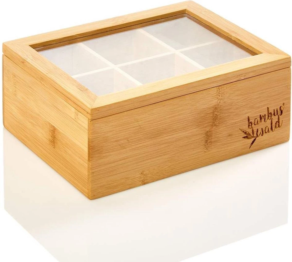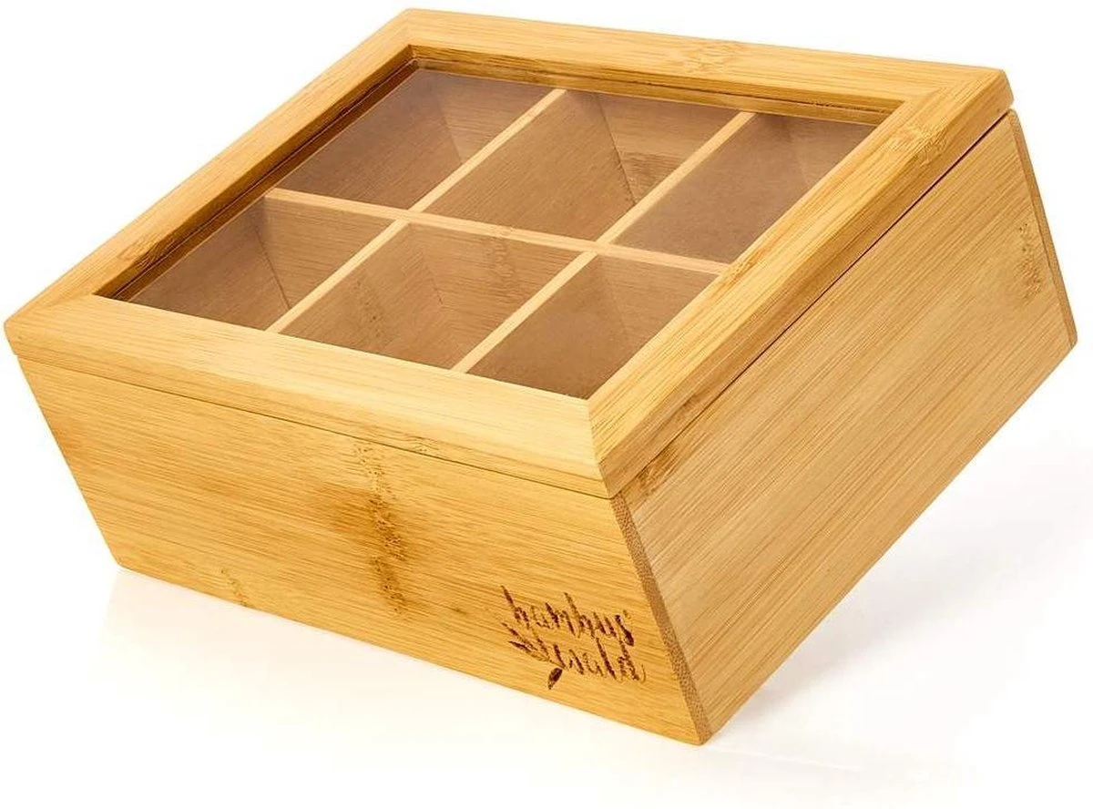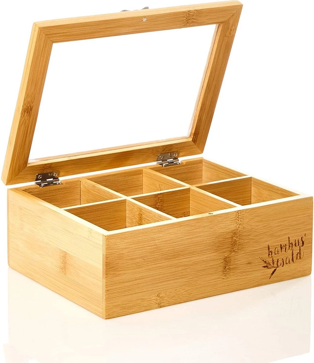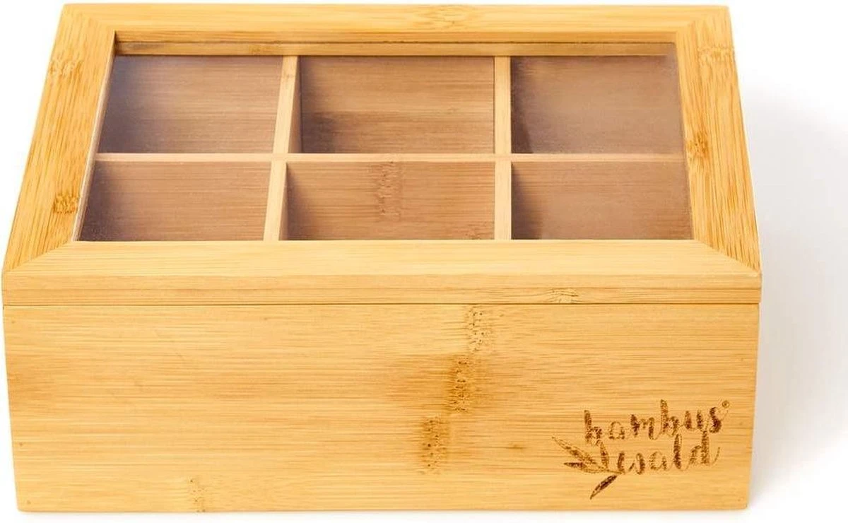 Bambuswald© Houten Theedoos Met 6 Vakken Gemaakt Van 100% Duurzame Bamboe