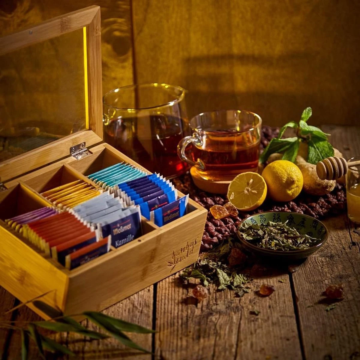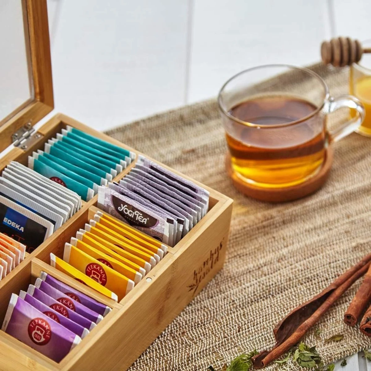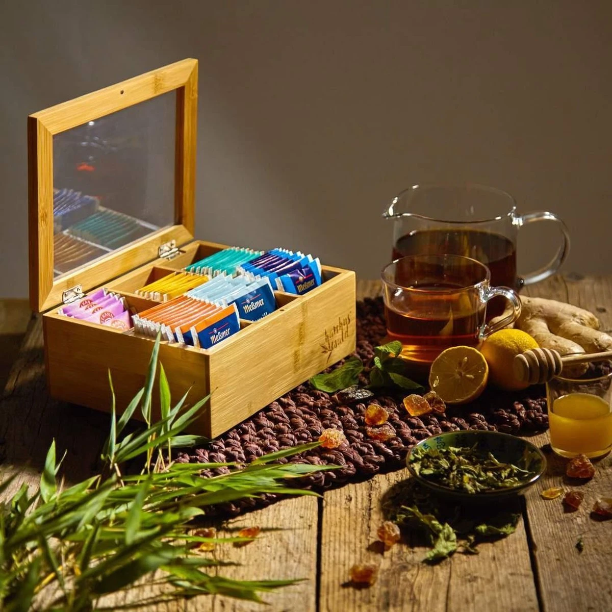 Bambuswald© Houten Theedoos Met 6 Vakken Gemaakt Van 100% Duurzame Bamboe