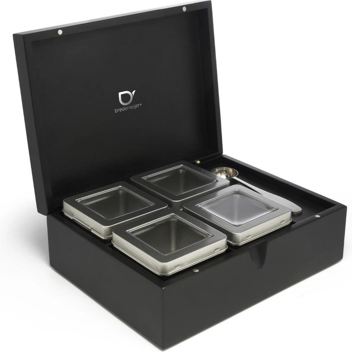 Bredemeijer – Theedoos + 4 Blikjes En Lepel Bamboe Zwart