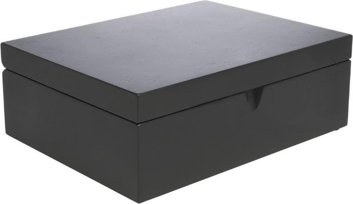Bewaar je losse thee op stijlvolle wijze met deze zwarte Bredemeijer® theedoos. De theedoos is voorzien van 4 blikjes en speciaal ontwikkeld voor het bewaren van losse thee. Zo blijft de thee langer houdbaar en blijft de smaak behouden. Met de bijhorende theelepel schep je de thee makkelijk uit de blikjes en dankzij de doorzichtige vensters, zie je precies welke thee in welk doosje zit. Door het uitgeslepen gootje aan de voorzijde, is de deksel makkelijk te openenen. De theedoos is gemaakt van bamboe en heeft een stijlvol uitstraling door de matte zwarte kleur. Een musthave voor de echte theeliefhebber!