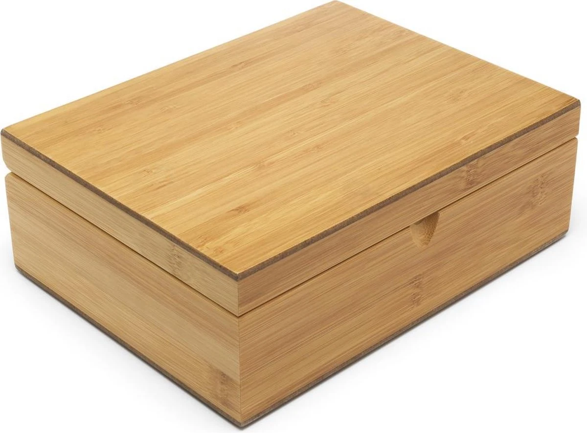 Bewaar je losse thee op stijlvolle wijze met deze bamboe Bredemeijer® theedoos. De theedoos is voorzien van 4 blikjes en speciaal ontwikkeld voor het bewaren van losse thee. Zo blijft de thee langer houdbaar en blijft de smaak behouden. Met de bijhorende theelepel schep je de thee makkelijk uit de blikjes en dankzij de doorzichtige vensters, zie je precies welke thee in welk doosje zit. Door het uitgeslepen gootje aan de voorzijde, is de deksel makkelijk te openenen. De theedoos is gemaakt van bamboe en heeft een stijlvol uitstraling. Een musthave voor de echte theeliefhebber!