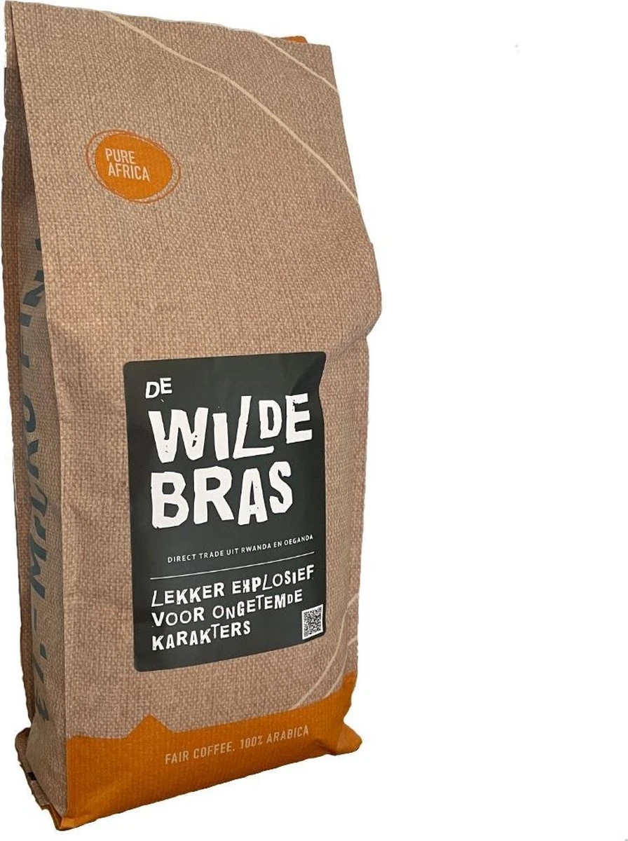 Een echte Wildebras doordat deze koffie een blend is van twee soorten arabica koffie met nog 20% robusta. De robusta geeft de koffie een heel licht bittertje. Onze klanten proeven in deze koffie noten, chocolade, citrusvruchten en kruiden.