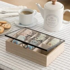 Merkloos Houten Theedoos 6-vaks 21 Cm – Theedozen/theekisten Van Hout 21 Cm